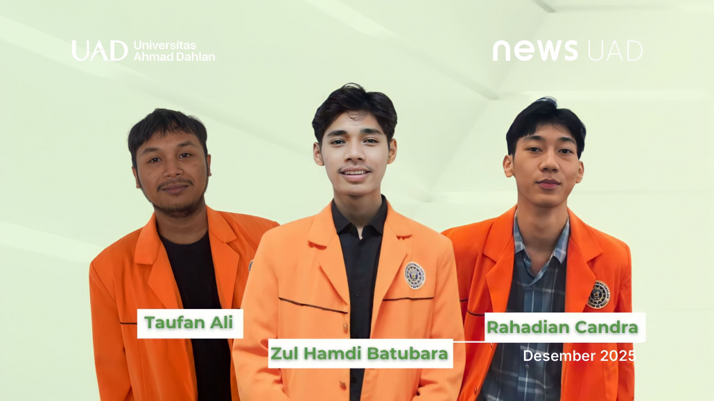 Tim mahasiswa Universitas Ahmad Dahlan (UAD) yang beranggotakan Zul Hamdi Batubara dari Pendidikan Biologi serta Taufan Ali dan Rahadian Chandara Vima Yoga dari Sistem Informasi berhasil menorehkan prestasi membanggakan dengan meraih Juara III dalam Perlombaan Perancangan Website Tingkat Nasional yang digelar oleh Universitas Jember pada Minggu, 24 Agustus 2025.