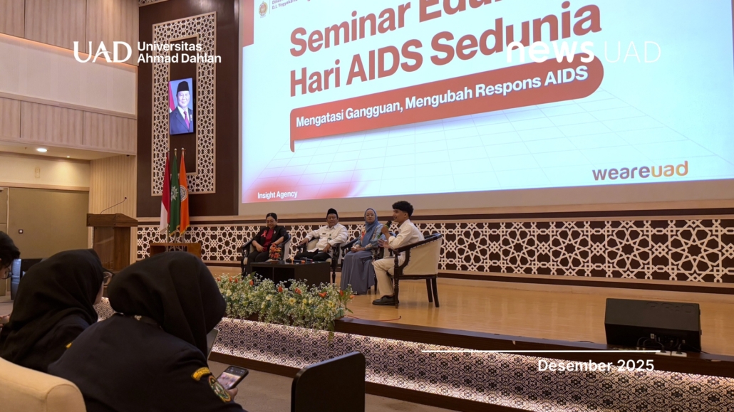 Program Studi (Prodi) Ilmu Komunikasi (Ilkom) Universitas Ahmad Dahlan (UAD) melalui Insight Agency bekerja sama dengan Dinas Kesehatan (Dinkes) Daerah Istimewa Yogyakarta (DIY) menyelenggarakan “Seminar Edukatif Hari AIDS Sedunia 2025” di Gedung Amphitarium Kampus IV UAD. Kegiatan ini sukses dilaksanakan pada Senin, 1 Desember 2025, bertepatan dengan peringatan Hari Acquired Immuno Deficiency Syndrome (AIDS) Sedunia.