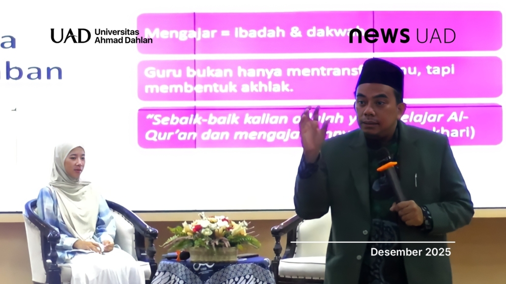 Fakultas Keguruan dan Ilmu Pendidikan (FKIP) Universitas Ahmad Dahlan (UAD) kembali menyelenggarakan Pengajian Bulanan Mahasiswa ke-5 pada Rabu, 26 November 2025. Kegiatan ini menghadirkan penceramah Dr. Mhd. Lailan Arqam, M.Pd.I., Dosen Magister Pendidikan Agama Islam (MPAI) sekaligus Direktur Madrasah Muallimin Muhammadiyah Yogyakarta. Mengusung tema “Guru Hebat, Pimpinan Umat: Memantaskan Diri Sejak di Bangku Kuliah”, kegiatan ini menjadi ruang pembinaan spiritual sekaligus penguatan identitas bagi calon pendidik.