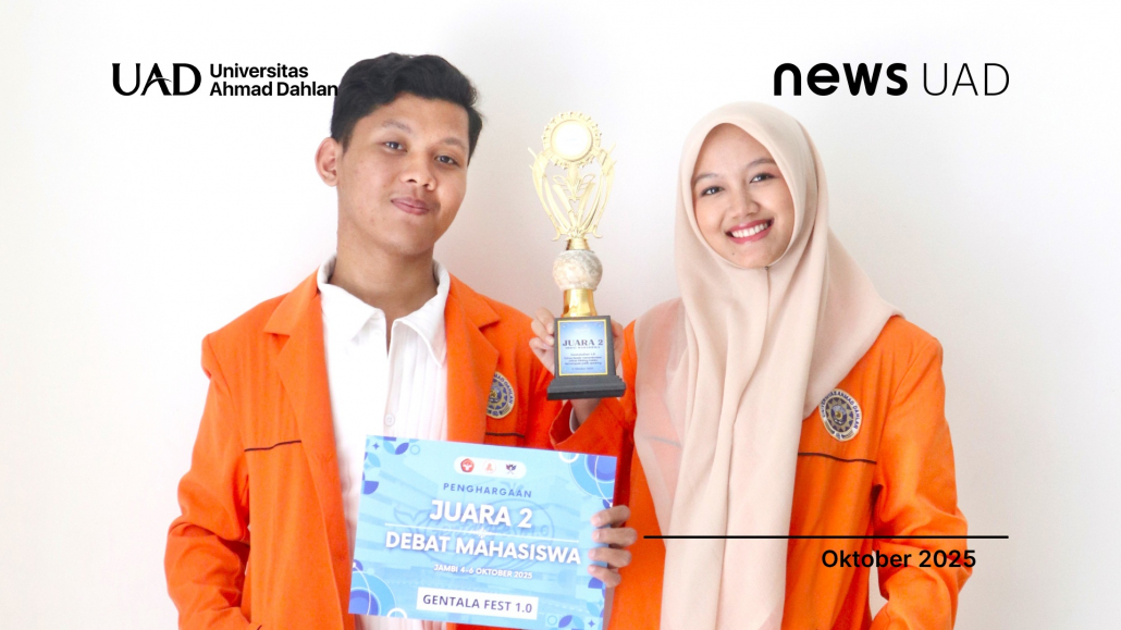 Mahasiswa Universitas Ahmad Dahlan (UAD) Kembali meraih prestasi dalam perlombaan Debat Tingkat Nasional. Tim dari Fakultas Sastra, Budaya, dan Komunikasi (FSBK) berhasil meraih juara 2 dalam Lomba Debat Gentalafest 1.0 yang digelar oleh Unit Kegiatan Mahasiswa (UKM) Debat Gentala Universitas Jambi yang diselenggarakan pada 4-6 Oktober 2025. Tim tersebut terdiri dari Wiga Sarah Putri dari Program Studi Ilmu Komunikasi Angkatan 2023 dan Farid Bagaskara yang merupakan Mahasiswa Program Studi Sastra Inggris Angkatan 2024.