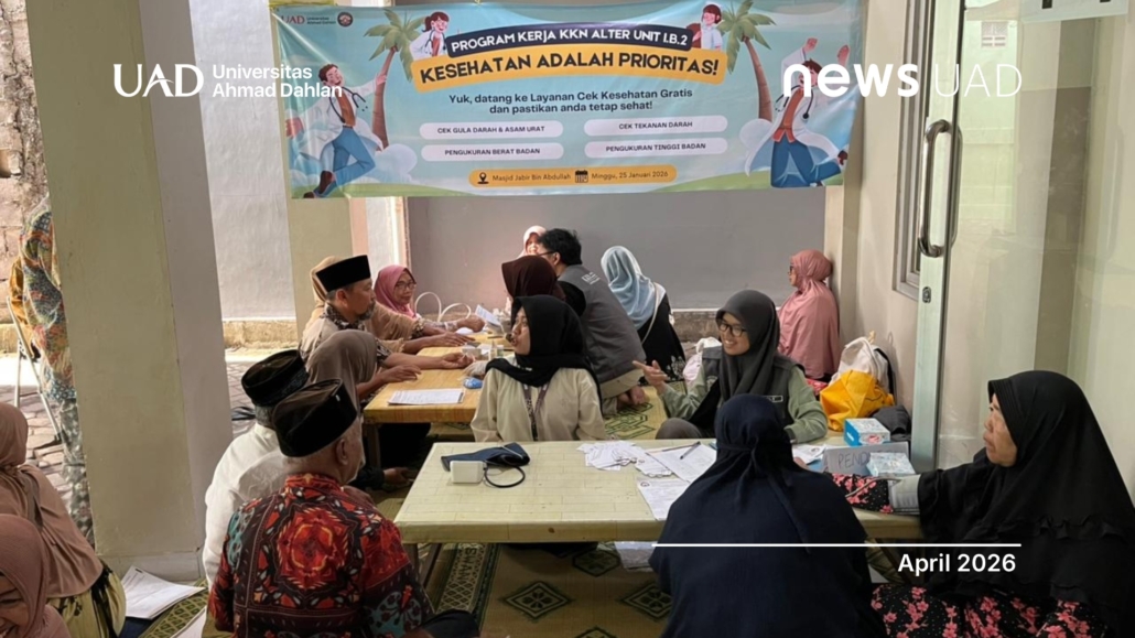 Mahasiswa Kuliah Kerja Nyata (KKN) Alternatif Periode 103 Unit I.B.2 Universitas Ahmad Dahlan (UAD) menyelenggarakan kegiatan cek kesehatan gratis bagi masyarakat di Masjid Jabir bin Abdullah, Padukuhan Sorowajan, Kalurahan Banguntapan, Kapanewon Banguntapan, Kabupaten Bantul, pada Minggu, 25 Januari 2026.