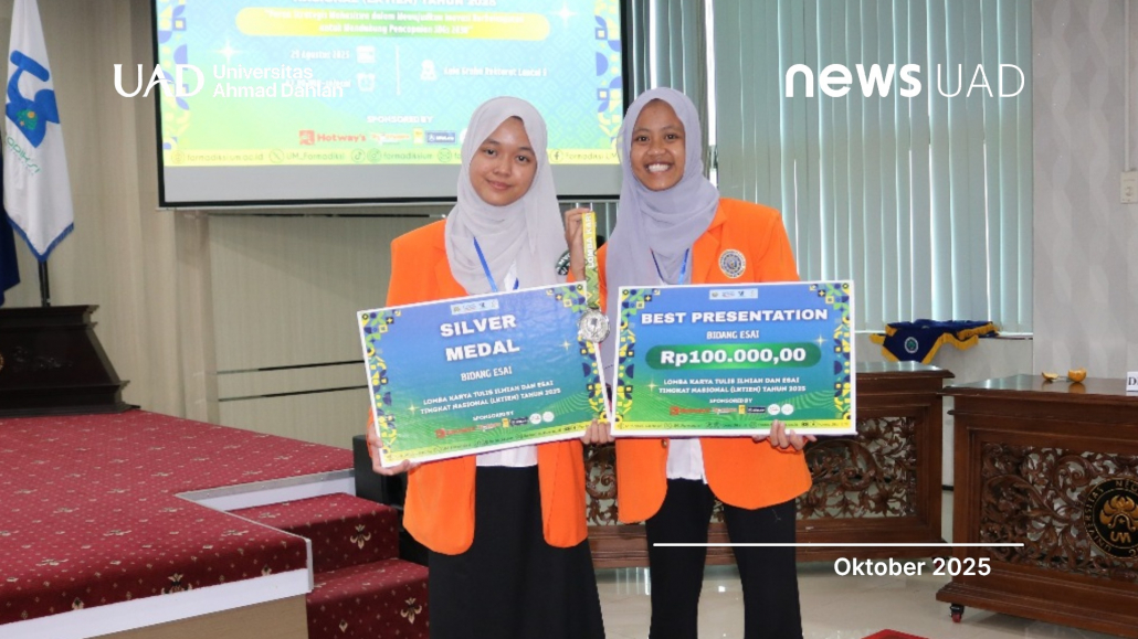 Mahasiswa Universitas Ahmad Dahlan (UAD) kembali menorehkan prestasi membanggakan di kancah nasional. Tim dari Program Studi Teknik Industri berhasil meraih Silver Medal bidang Esai dan Best Presentation dalam ajang Lomba Karya Tulis Ilmiah dan Esai Nasional (LKTIEN) yang diselenggarakan oleh Forum Mahasiswa Bidikmisi (Formadiksi) Universitas Malang pada 29-31 Agustus 2025.