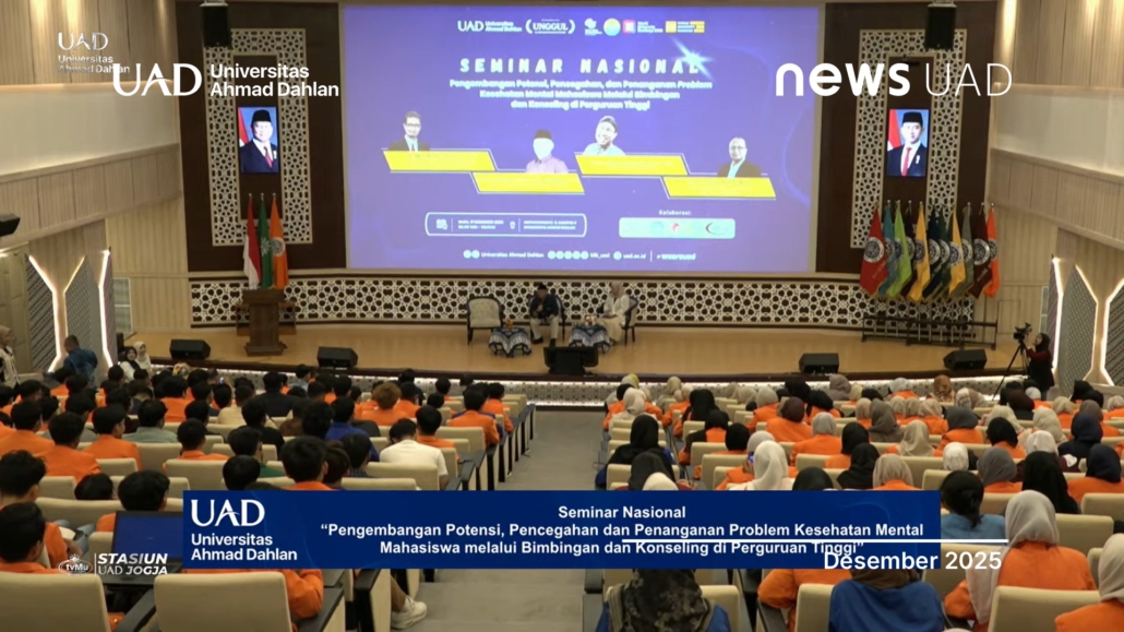 Universitas Ahmad Dahlan (UAD) menyelenggarakan Seminar Nasional bertajuk “Pengembangan Potensi, Pencegahan, dan Penanganan Problem Kesehatan Mental Mahasiswa” sebagai bagian dari rangkaian Milad ke-65 UAD pada Rabu, 17 Desember 2025 yang bertempat di Ruang Amphitarium, Kampus 4 UAD. Kegiatan yang digelar oleh Bidang Kemahasiswaan dan Alumni (Bimawa) UAD ini diikuti oleh sekitar 300 mahasiswa dari 20 perguruan tinggi di Indonesia.
