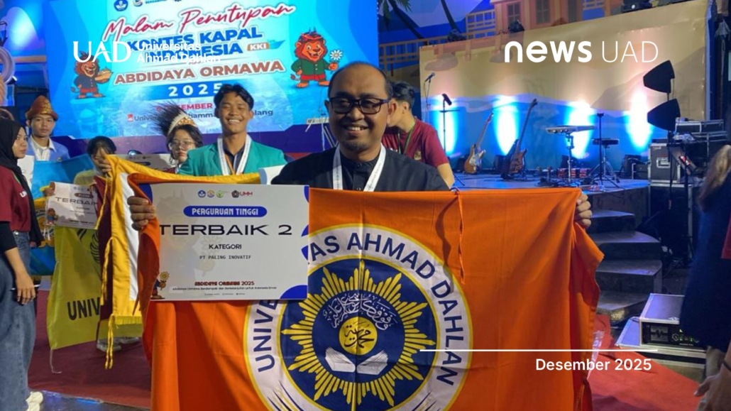 Universitas Ahmad Dahlan (UAD) kembali menorehkan prestasi membanggakan pada ajang Abdidaya Ormawa 2025 yang diselenggarakan oleh Kementerian Pendidikan, Kebudayaan, Riset, dan Teknologi (Kemendikbudristek) Republik Indonesia (RI). Pada puncak penghargaan yang berlangsung Sabtu, 6 Desember 2025, di Universitas Muhammadiyah Malang (UMM), UAD berhasil meraih Juara II kategori Perguruan Tinggi Paling Inovatif. Capaian ini menjadi bukti komitmen UAD dalam menghadirkan inovasi-inovasi pendampingan bagi Program Penguatan Kapasitas (PPK) Organisasi Kemahasiswaan (Ormawa).